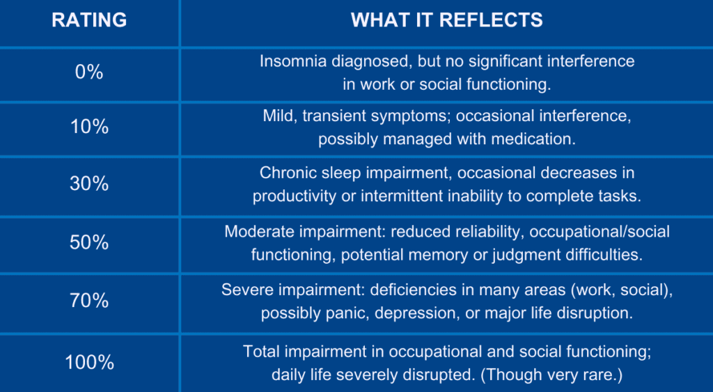 VA Disability Rating Ranges for Insomnia Symptoms
