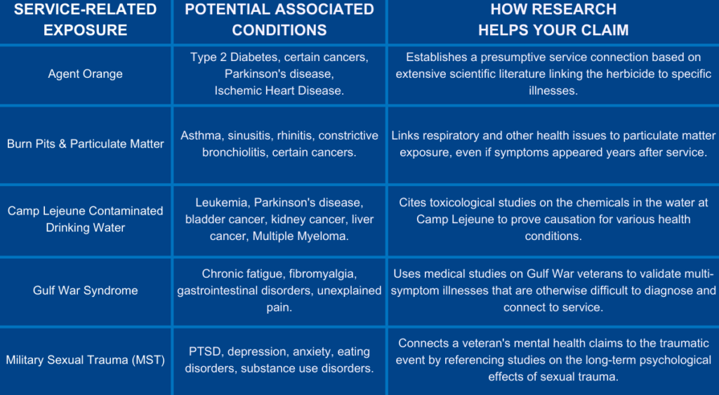 It’s one thing for a doctor to write their opinion. It’s a completely different level of power when that doctor backs up their opinion with scientific studies. They are showing the VA that the entire medical community supports their conclusion, which strengthens all types of health claims.